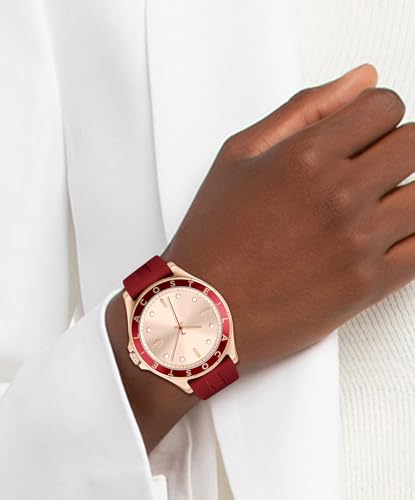 Lacoste - ساعة لاكوست كوارتز انالوج للنساء بسوار سيليكون 2001266، ذهبي قرنفلي