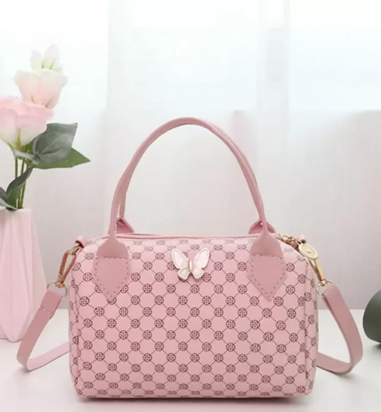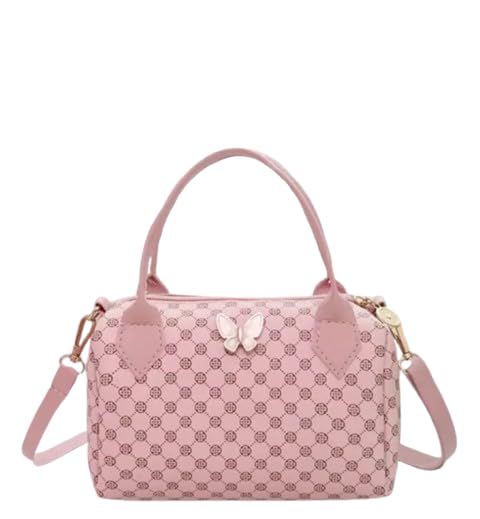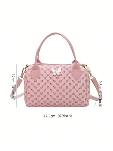 Generic - Ladies' Butterfly Accent Handbag, Pink Monogram Pattern, Crossbody Shoulder Bag with Detachable Strap