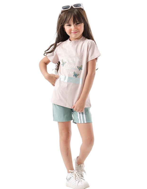 LAMOUR - LAMOUR Girls 2-Piece Short Sleeve T-Shirt and Shorts Set Parent-1133
