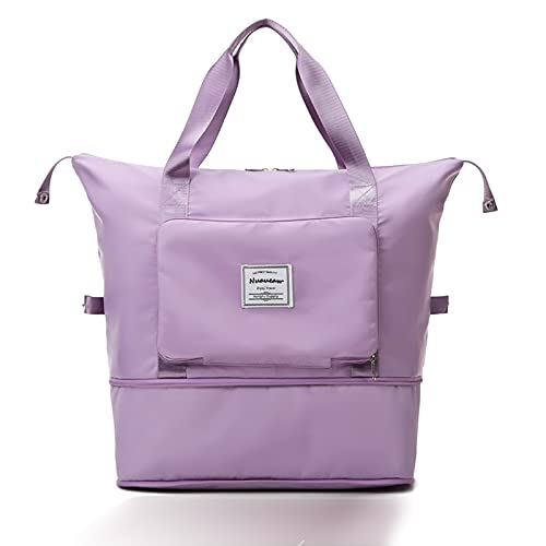 Nuaueaw - شنطة دفل ذات سعة كبيرة قابلة للطي وخفيفة الوزن ومقاومة للماء مع فصل للاغراض الرطبة والجافة يمكن ارتدائها كشنطة كتف للسفر وصالة الالعاب الرياضية, أرجواني، نايلون