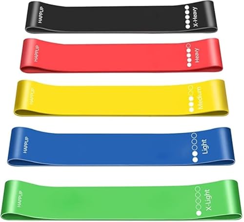 - WHAT'S INCLUDED - 5 exercise loop bands with color-coded resistance levels, portable carry bag and instructions manual.Excellent exercise band for home gym.Our Resistance bands|Gym band are supreme quality exercise bands for stretching and ideal home gym equipment; Integrate them into your yoga, Pilates, or other routine or use them for stretching .Finest physiotherapy equipments|workout bands for women.Resistance bands set|Elastic bands are ideal for those who don’t have time to run to the gym.