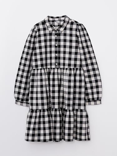 LC WAIKIKI - LC واكيكي فستان كاروهات باكمام طويلة ورقبة قميص للبنات