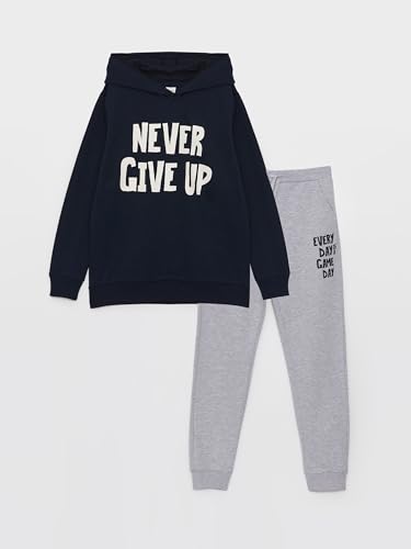 LC WAIKIKI - LC WAIKIKI Printed Long Sleeve Boys' Hoodie and Sweatpants W3GC14Z4-DWP-1-7-8 Years Navy