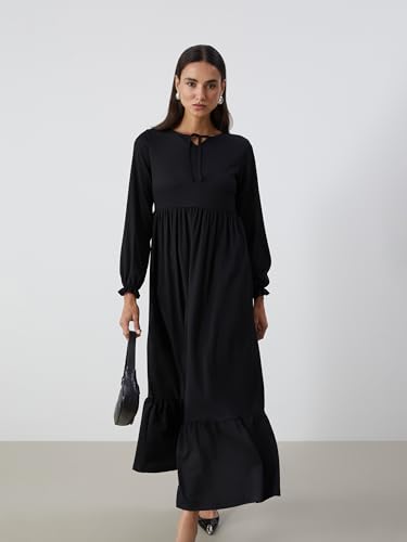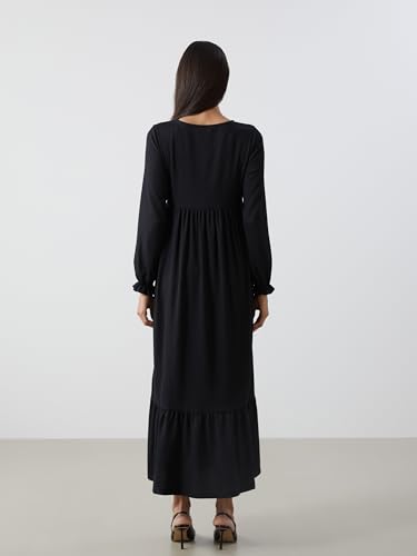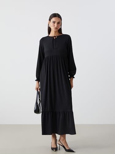 LC WAIKIKI - فستان بقصة عادية وأكمام طويلة ورقبة برباط للنساء من ال سي وايكيكي