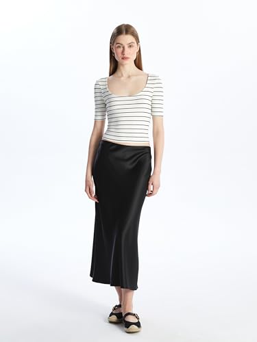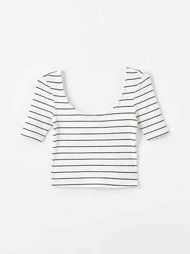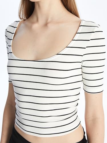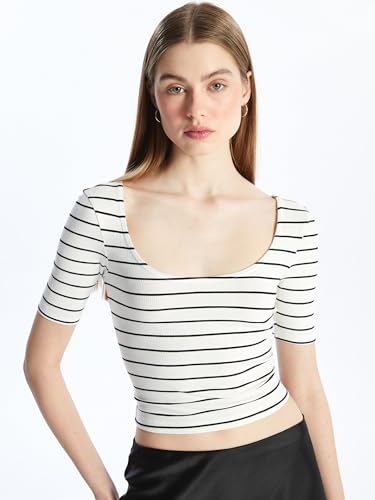 LC WAIKIKI - LC WAIKIKI U-Neck Striped Short Sleeve Women's Crop