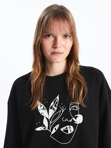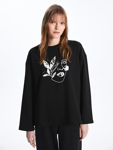 LC WAIKIKI - LC WAIKIKI Woman Crew Neck Printed Long Sleeve Oversize Sweatshirt