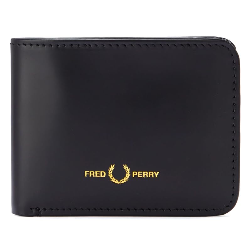 Generic - محفظة جلدية ثنائية الطي مع حافظة للعملات المعدنية، نمط شعار منقوش، لون اسود