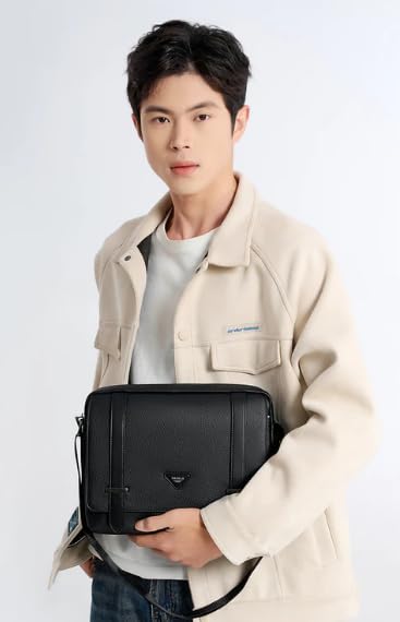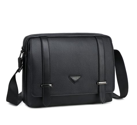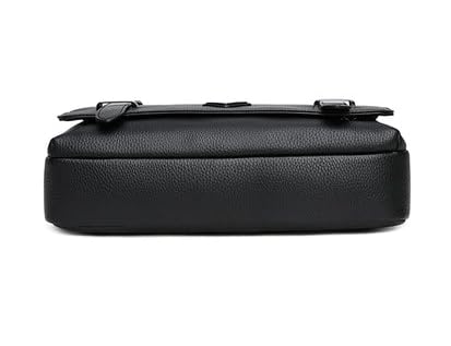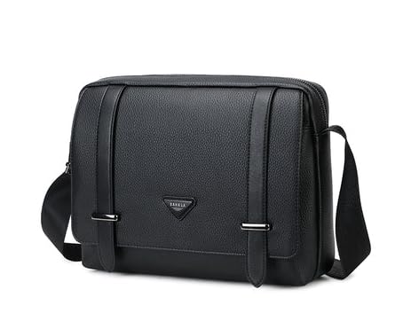Leather Crossbody Messenger Bag, 30 x 25 x 5 cm, Black, Modern Shoulder Bag for Work and Travel