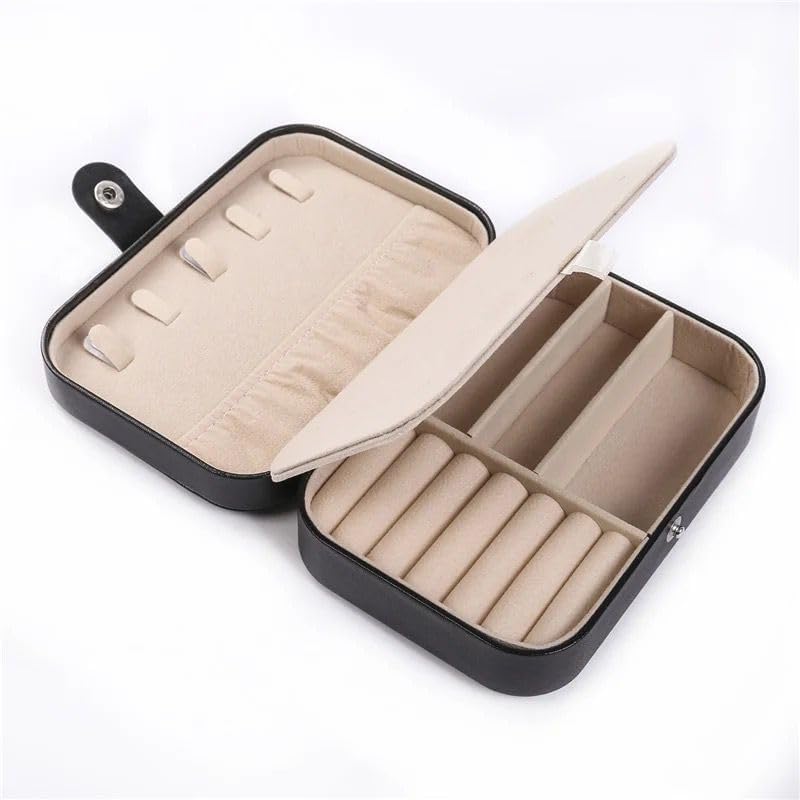 Generic - Leather Jewelry Organizer Box Multi-Layer Jewelry Box Portable Travel Jewelry Box Earrings (Black)