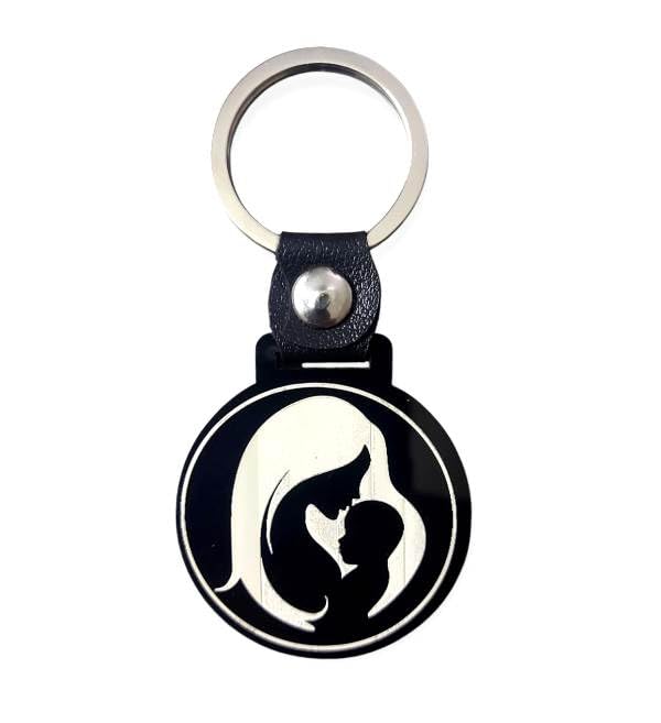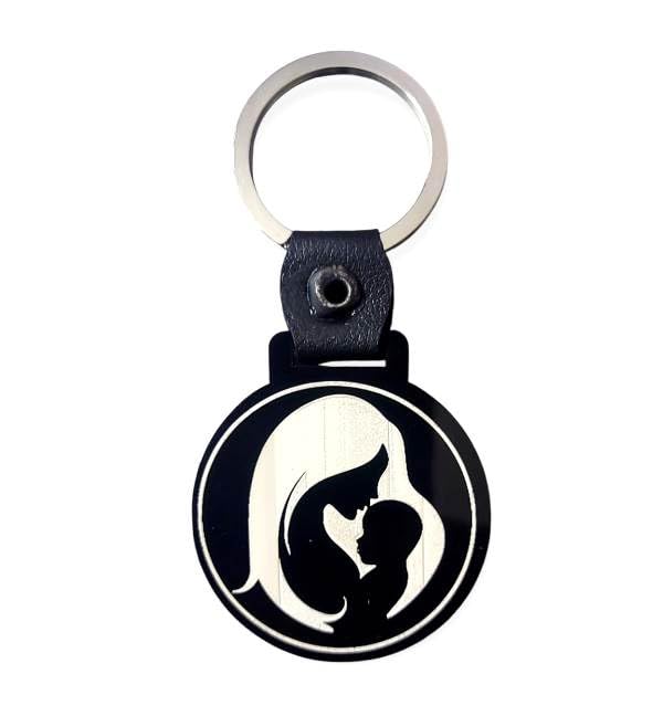 Generic - Leather Keychain with Mother and Child Silhouette Pendant, Black and White