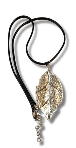 Generic - Leather Leaf Shape Pendant Necklace (Black)