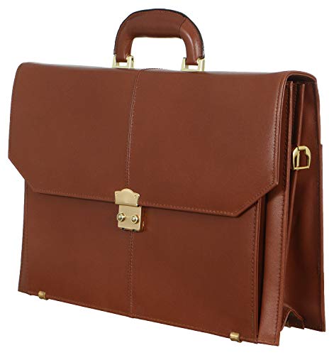 Leather Shop - شنطة مكتبة جلد حرف زاويه للرجال من ليذر شوب -هافان، بنى، حقيبة يد