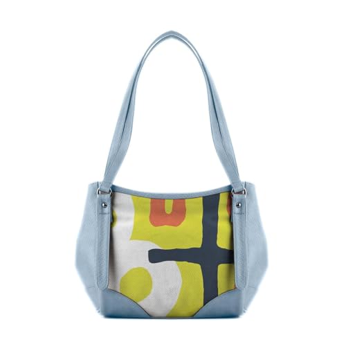 Generic - Leather Tote Bag with Camouflage Print Panel, Blue, T8