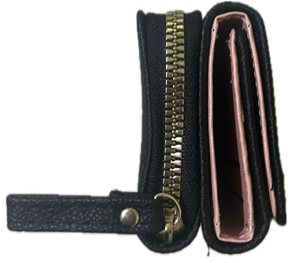 Generic - محفظة جلد بسوستة ملتفة للنساء - محفظة جلد نسائية انيقة لحفظ النقود والكروت والمتعلقات صغيرة الحجم - اسود -