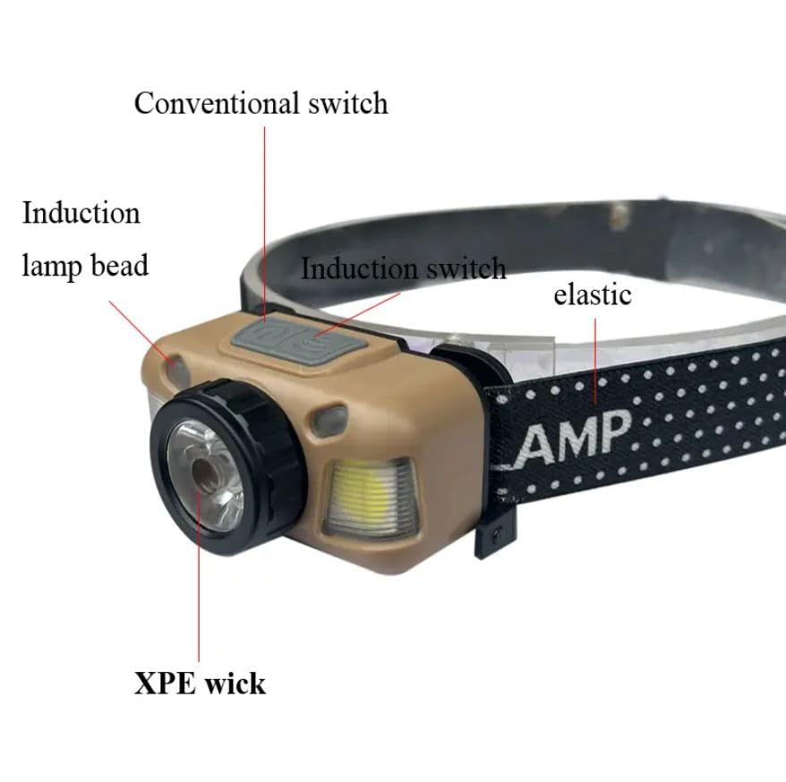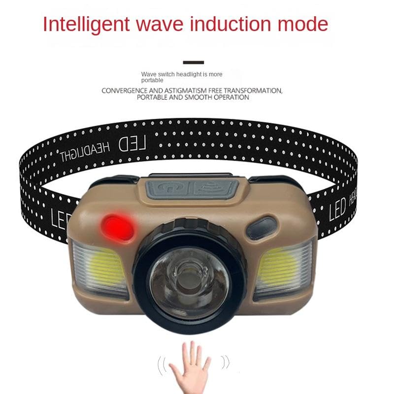 Generic - LED Headlamp with Motion Sensor, Intelligent Wave Induction Mode, Adjustable Elastic Band, Tan