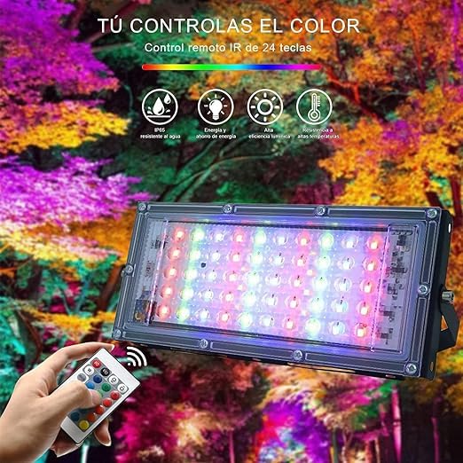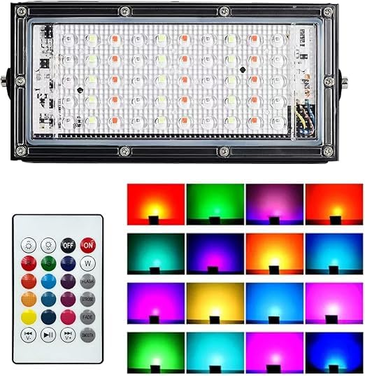 Generic - مصباح LED خارجي، مصباح ملون RGB 50 وات، لون IP65، قابل للتعديل، جهاز تحكم عن بعد، مصابيح LED خارجية