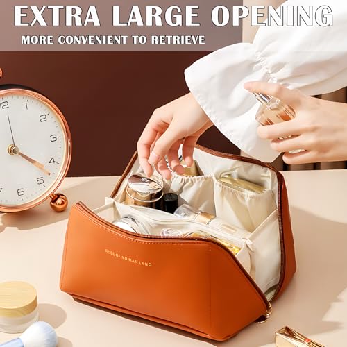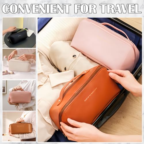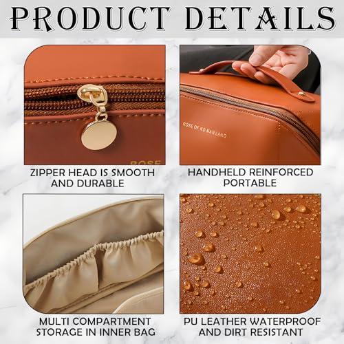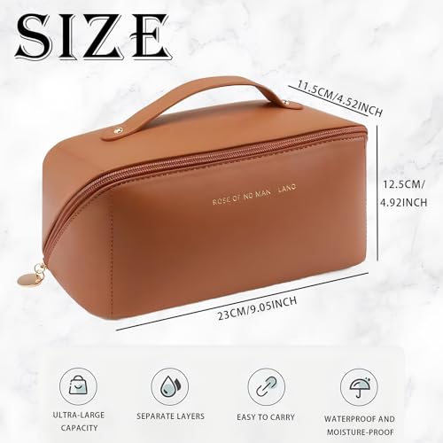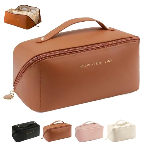 LHLZNB - Large Capacity Makeup Bag, Travel Cosmetic Bag with Handle and Divider Flat Lay Organizer Portable Toiletry Bag,Makeup Bags,Makeup Storage Brush for Women (Coffee)