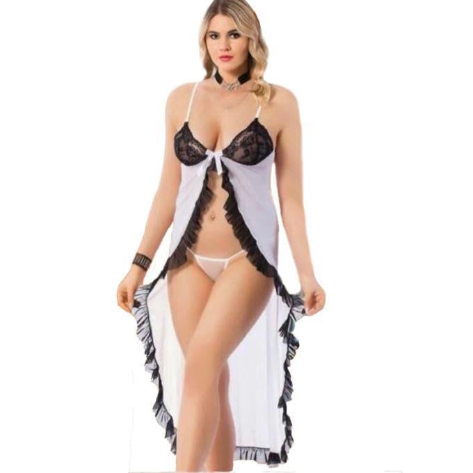 Generic - Lingerie Long Soft Tulle Open Front Lace Black
