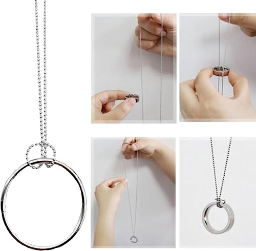 LMCIEZR - Trick Chain Necklaces Magic Halloween Magician's Ring on Chain Gimmick Impromptu Street Effects Tie Untie Necklace Knots Stage Mentalism Real Close Up Illusion Professional Routine, Zinc, No