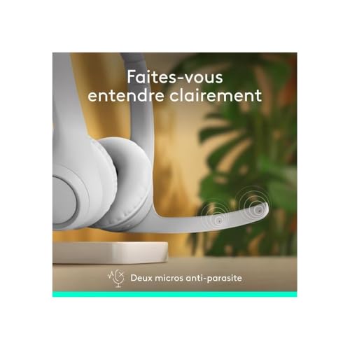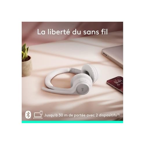 Logitech - Logitech Zone 300 Wireless Bluetooth Headset With Noise-Cancelling Microphone, Compatible with Windows, Mac, Chrome, Linux, iOS, iPadOS, Android – Off-White