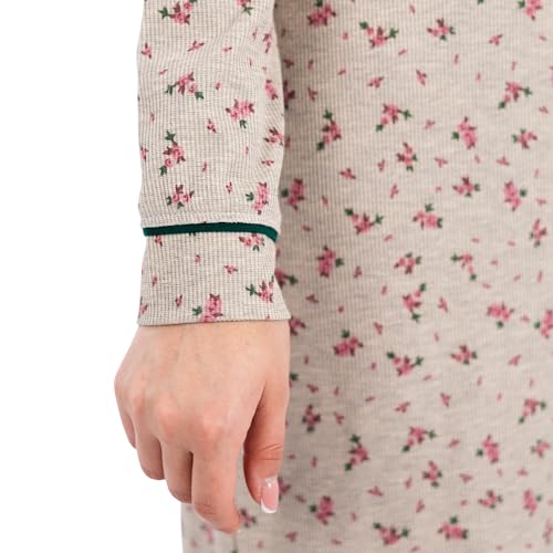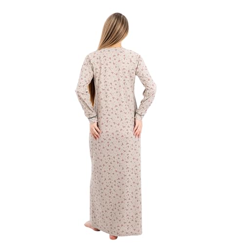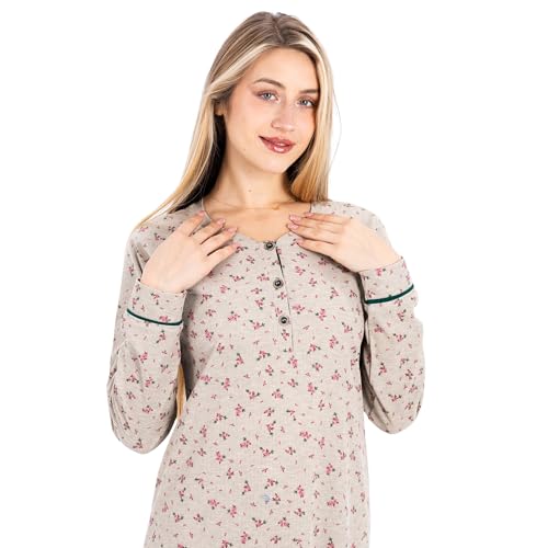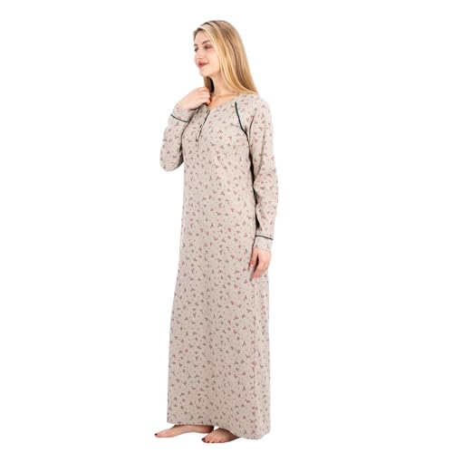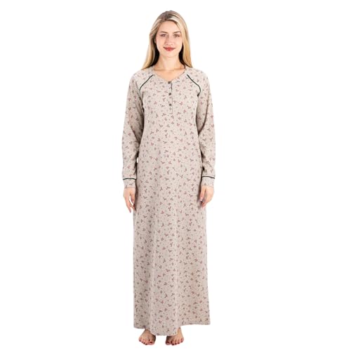 ZECOTEX - قميص نوم طويل قطن مضلع بتصميم مطبوع بالزهور، ملابس نوم أنيقة ومريحة من قماش ناعم وخفيف الوزن