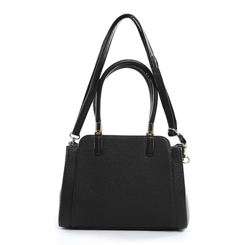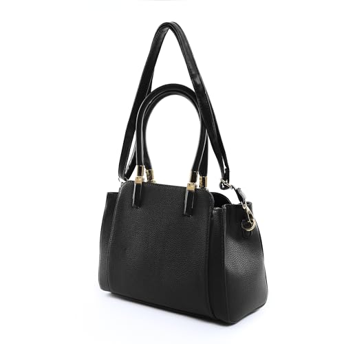 LOU - LOU Classic Structured Handbag, Black Leather with Gold Hardware, Double Handle Tote