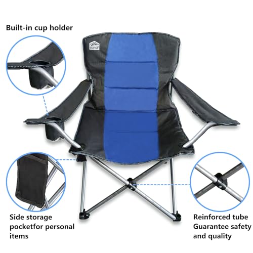 - Multifunctional design: folding camping chairs with cup holders and armrests, let you enjoy the comfort. The side pocket offers space for mobile phone, notebook and magazine.