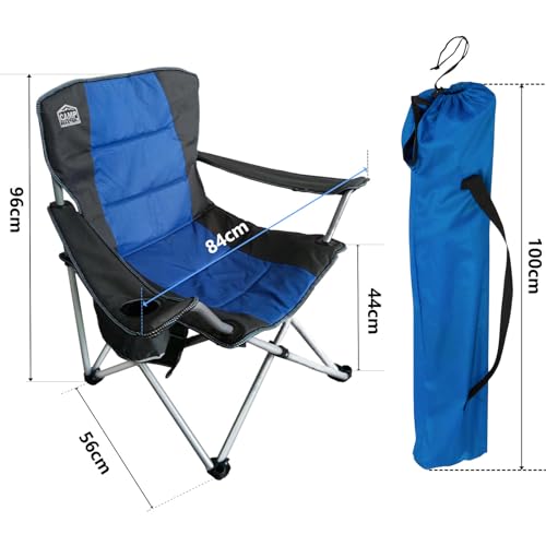 - 🎄【FOLDABLE AND EASY TO CARRY】This camping chair weighs 4.4kg, has an unfolded size of 56 x 84 x 97 cm and a folded size of 100 x 20 x 20 cm. You can easily store it almost anywhere and take it with you in the trunk of your car.