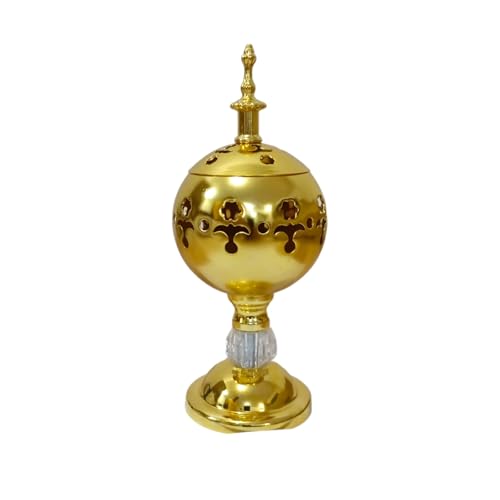 - تصميم رائع: تتميز هذه المبخرة المعدنية لون ذهبي فاخر وأنماط معقدة، مما يضيف لمسة أنيقة إلى ديكورك الداخلي.