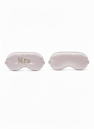Generic - Luxurious Satin Sleep Mask with Gold embroidered 'MRS' Text, White, Silk Feel Material, Elastic Band, Wedding Day Accessory, Light Blocking Eye Cover