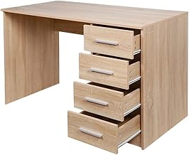 • FEATURES: Enough space for multiple monitors, with 5 storage shelves that allow you to easily organize your items, plus ample storage space and a suitable place to place the CPU or console. The finish is white, made of Eco-friendly Polyester Painting with 7 layers of protection, but the table has no paint finish on the back. Its dimensions are 75 cm high, 60 cm deep and 136 cm wide.