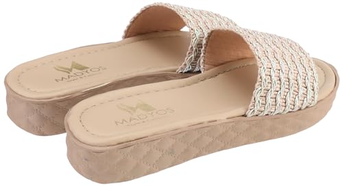 MADYOS - Flat Slippers,Contrast Sole Open-Toe Slides For Women,Synthetic fibers,BEIGE, 38 EU