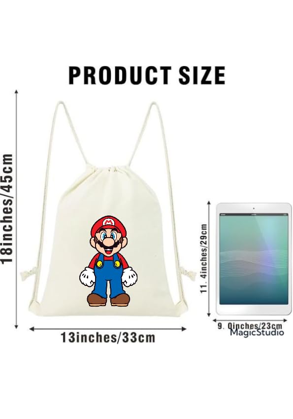 Generic - شنطة ظهر ماريو من ماجي ستور، شنطة ظهر من القماش الجمالي، اسود، 18 × 13 انش، بتصميم ماريو لطيف