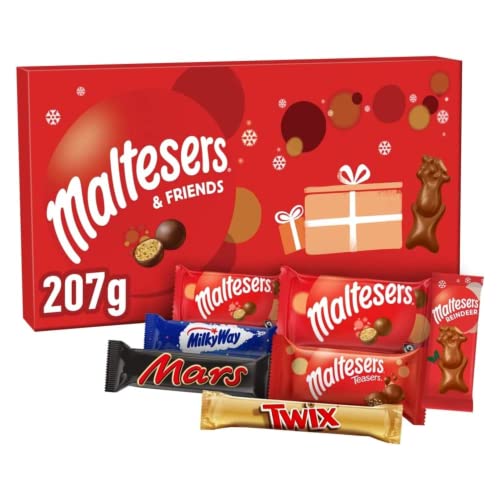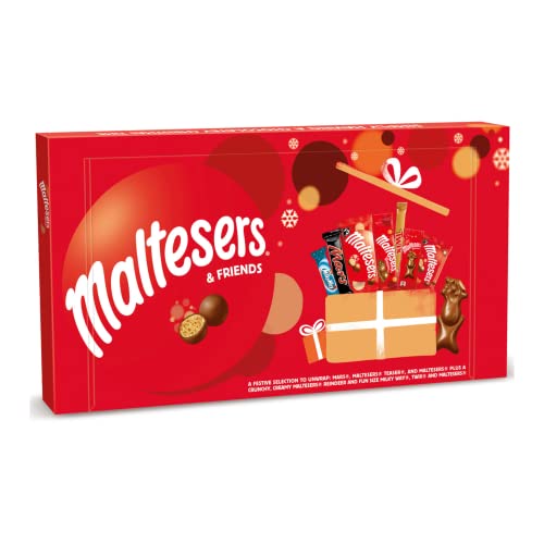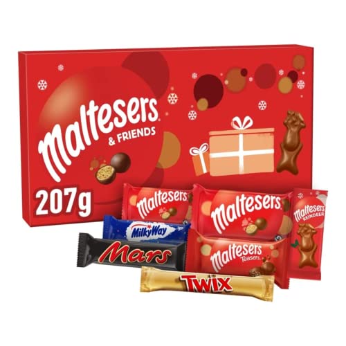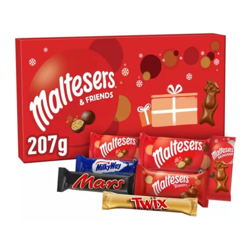 Bella & Co. - صندوق تشكيلة شوكولاتة من مالتيزرز اند فريندز | صناديق تشكيلة | هدايا شوكولاتة الكريسماس | صناديق تشكيلة الشوكولاتة | علب شوكولاتة | حشو جوارب الكريسماس للرجال والنساء | 207 جرام