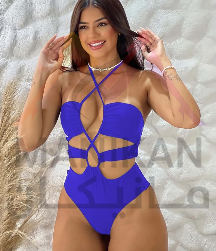 Generic - مايوه بدون حمالات من خامة ليكرا، لانجري بتصميم رقبة برباط متقاطع وتفاصيل قصات للنساء من مانيكان