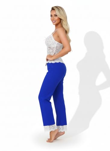 Generic - MANIKAN women's pajama set Elegant 2-piece long pants made of a soft and comfortable cotton blend with elasticity and a valuable sheer soft lace top.