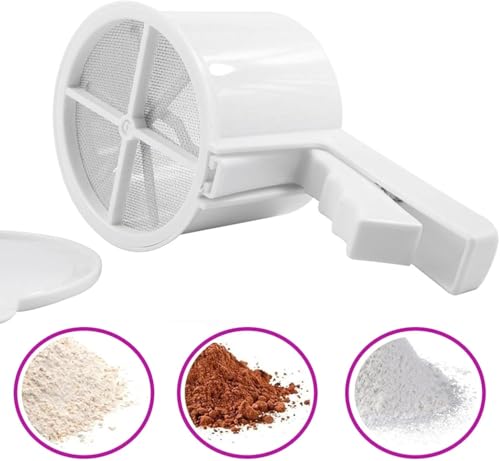 AREXOL - Manual Sifter with Ergonomic Handle for Straining Flour, Sugar, Condiments, Smart Graduated Design with Stylish Preservation Lid, Easy to Clean – Perfect for Baking Desserts