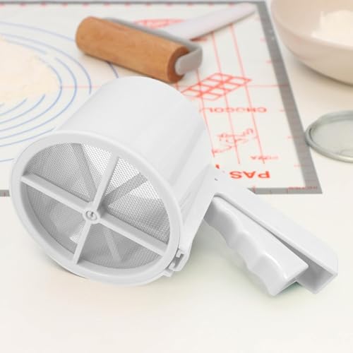 - 【Smart Graduated Design】 The sifter is designed with gradient inside that allows ideal distribution of dry materials while filtering, helping you achieve a smooth, even fine that makes pastries and bakery more light and brittle and prevents annoying clumps during preparation. 1 X