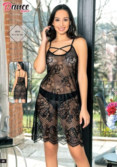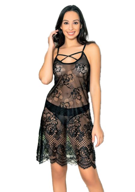 Marti Homewear & Lingerie - Marti Homewear & Lingerie 4174 Sheer Lace Nightdress with Strappy Detail & Matching Panty For Woman's