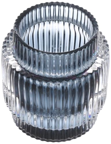 Matalan - Matalan Blue Ribbed Glass Tealight Holder
