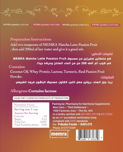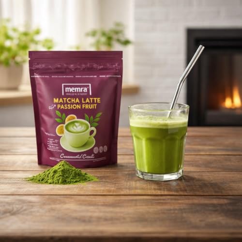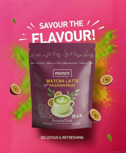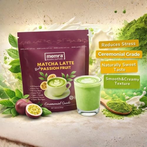 • مزيج لاتيه ماتشا الفاخر - مسحوق لاتيه ماتشا ناعم على الطريقة اليابانية ممزوج بنكهة فاكهة العاطفة الحقيقية للحصول على مذاق كريمي منعش ومتوازن بشكل طبيعي