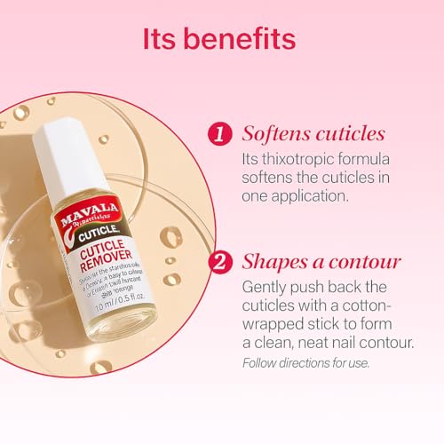 • Enjoy beautiful hands like from a manicure: torn cuticles or excess skin give the nails an unkempt look and a beautiful hand becomes unattractive. Our Mavala product is the solution. Use it with our manicure sticks!