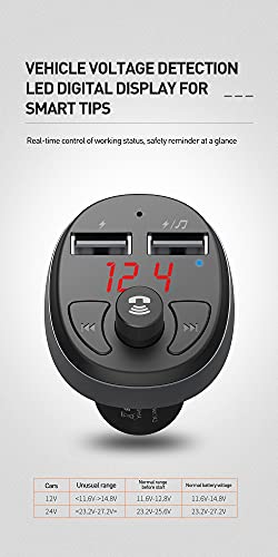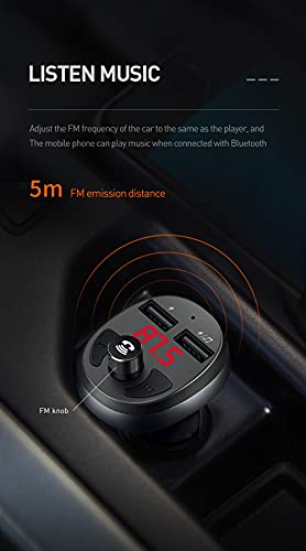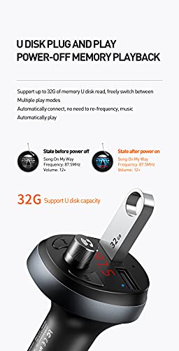 - Material: Aluminum alloy shell -With FM full frequency wireless transmission technology, support to read mobile pone/U disk audio file directly. -LED display car charger voltage, FM frequency and working status information -5V,3A for charging -Bluetooth version: 4.2 -Bluetooth receiving distance <10m -Support U disk capacity ≤32g -Support formate: MP3/WMA/WAV -FM transmitting distance <5m Product size: 72.9*39.8*47.4mm N.W:30g Package size: mm G.W.:51.2g