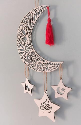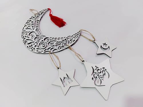 Generic - أشكال خشبية قص ليزر MDF (زينة رمضان القمر الهلال مع فانوس رمضان ، خشب مصنى)