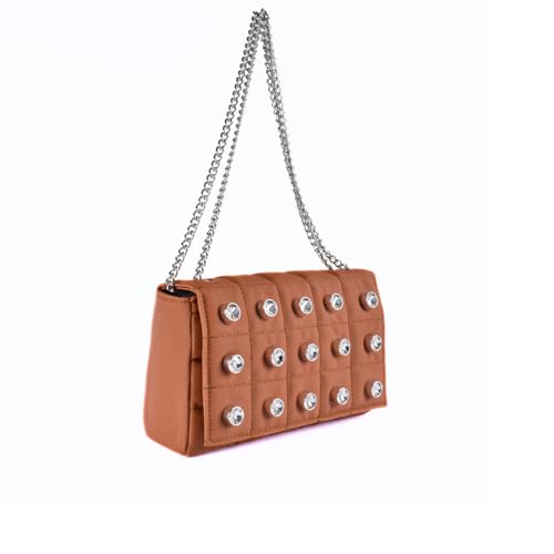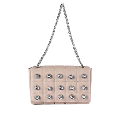 Melouk - Quilted Shoulder Bag with Studs - Beige