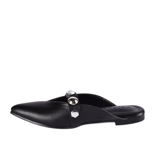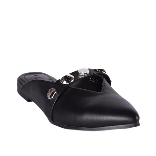 Melouk - womens Ivory Flat Decorated Slipper-Black Flat Sandal