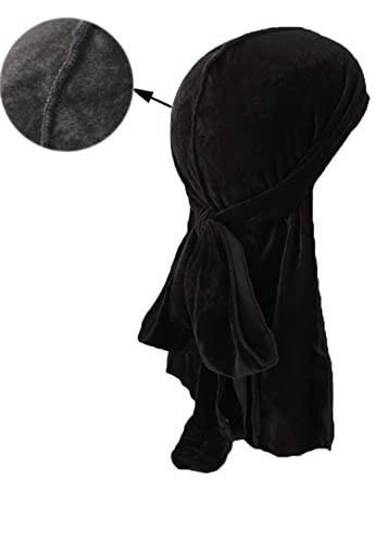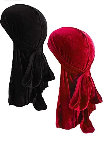 Generic - غطاء للرأس قطيفة بذيل طويل وشريط عريض 360 ويف للرجال، قطعتين (اسود واحمر)