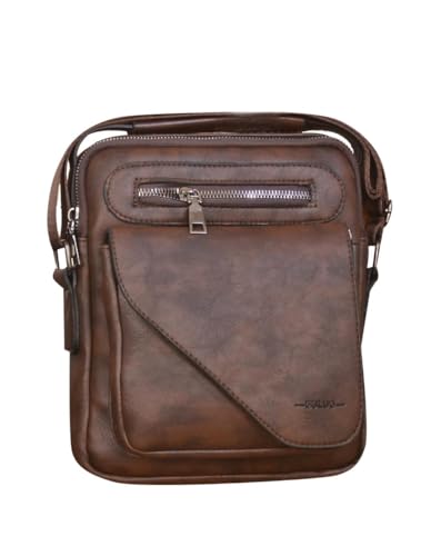 Generic - Men's Leather Crossbody Bag - Resistant Anti-Peeling Split Inside All Purpose - School Travel Work Hiking Daily Use - Dark Brown