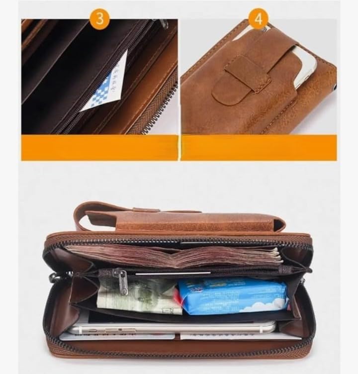 - 👝 المميزات: تصميم فاخر من الجلد الطبيعي عالي الجودة. سحّاب قوي مزدوج الإغلاق للحماية الكاملة لمقتنياتك. قسم خاص للهاتف المحمول لسهولة الوصول والاستخدام. جيوب متعددة لتنظيم البطاقات، الأوراق النقدية، والمستندات. خفيفة الوزن وسهلة الحمل بفضل اليد الجانبية الأنيقة. مناسبة للاستخدام اليومي، السفر، العمل أو الخروج السريع. 📏 المواصفات: الخامة: جلد صناعي عالي الجودة. اللون: بني كلاسيكي أنيق. عدد الجيوب: 6 جيوب + سحّاب داخلي. الإغلاق: سحاب معدني قوي. المقاس: يناسب معظم الهواتف الذكية والأوراق النقدية.