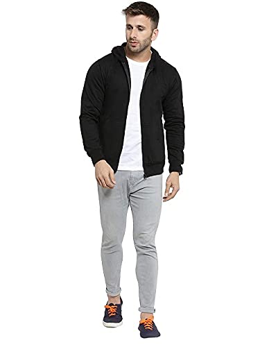 Generic - جاكيت للرجال بسوستة كاملة من الصوف المخملي برقبة مرتفعة، أسود